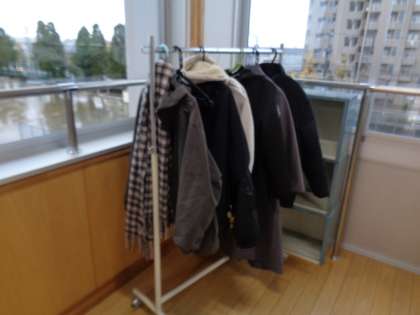 寒くなってきました。コートや防寒具が廊下に整理されています。