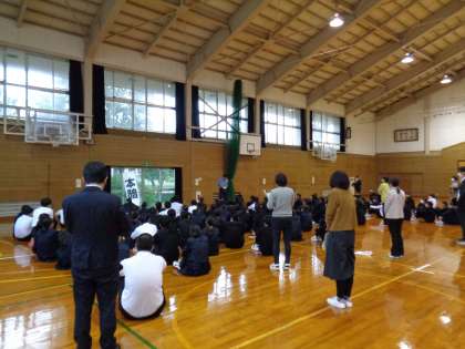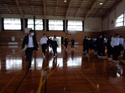 今週予定されていた避難訓練が今日行われました。体育館へ静かに素早く避難できました。
