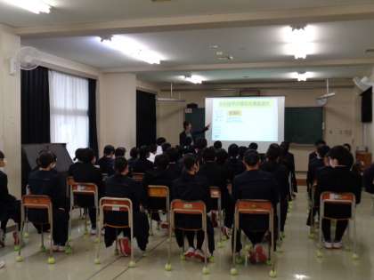 2年生は学年集会です。進路について話を聞いていました。中学校卒業後は、それぞれの進路を選択します。少しずつ考えましょう。