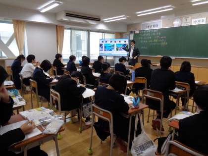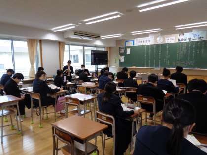 2年生の授業です。国語と社会です。国語では、音読をしていました。社会では、富山県の観光資源黒部ダムについて学習していました。