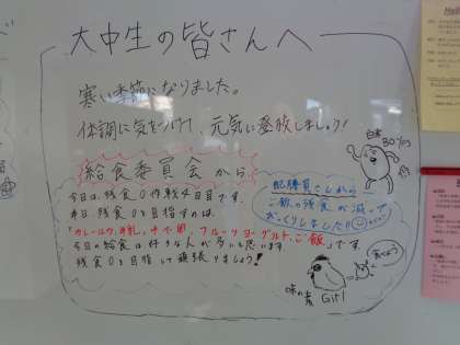 生徒会からのお知らせです。給食委員会の残量ゼロ運動についてのお知らせです。