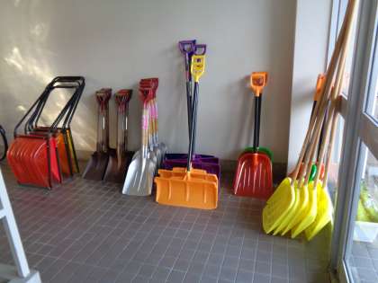 生徒玄関には、除雪のための道具が準備されています。そろそろ雪が降りそうです。