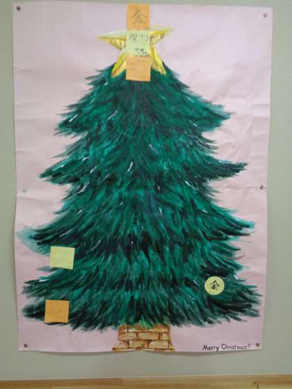 執行部が大中フェスティバルを行いましたが、各委員会も頑張っています。クリスマスツリーは、全校で作り上げます。完成が楽しみです。