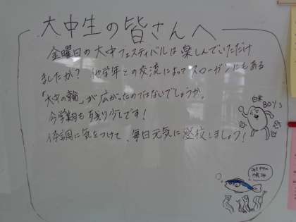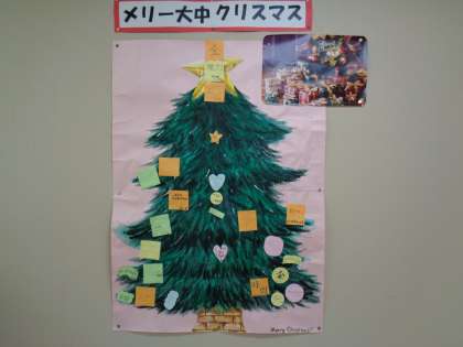 生徒会活動です。大中フェスティバルの振り返りです。また、クリスマスツリーのカード記入に参加する人が増えています。