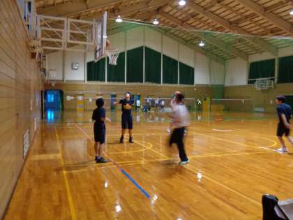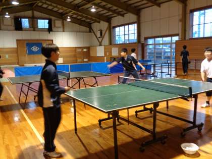 卓球部とバスケットボール部です。1,2年生仲良く活動しています。