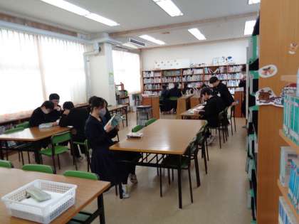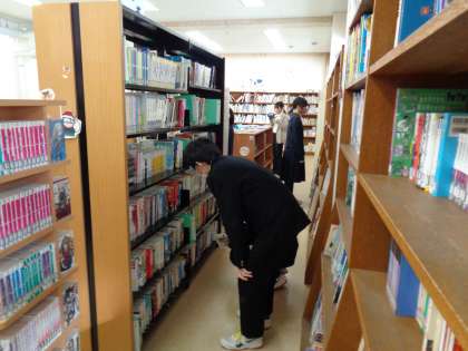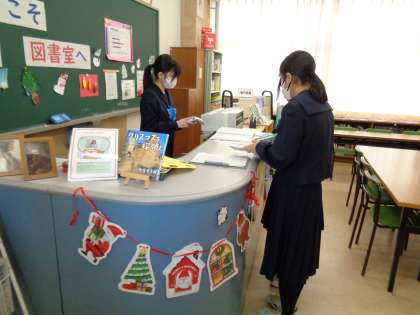 2年生の国語です。冬休みの読書のために本を探したり、借りたりしていました。