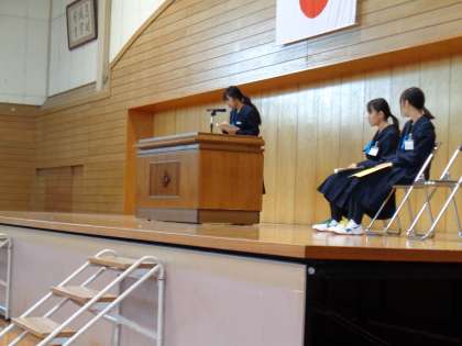 各学年の代表者が2学期を振り返っての意見発表をしました。がんばったことやこれからの目標などを話しました。