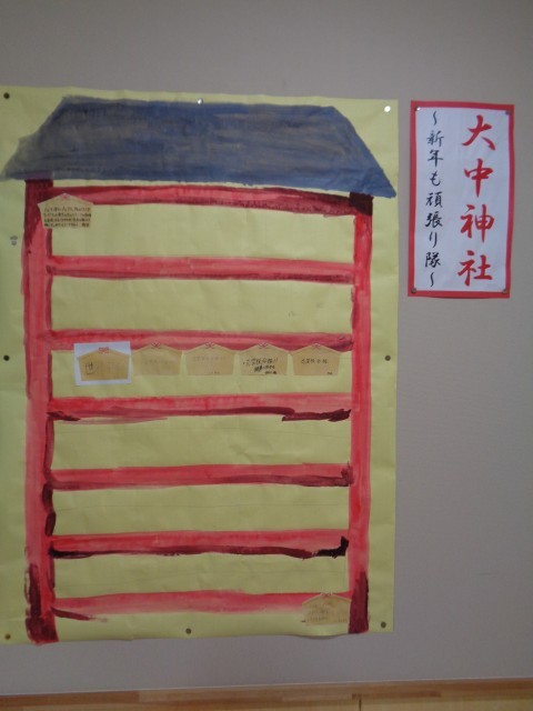 生徒会で大中神社と名付けて、今年の願い事を書いてもらって掲示してます。絵馬がだんだん増えていく予定です。