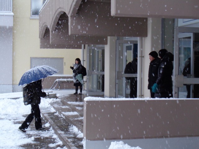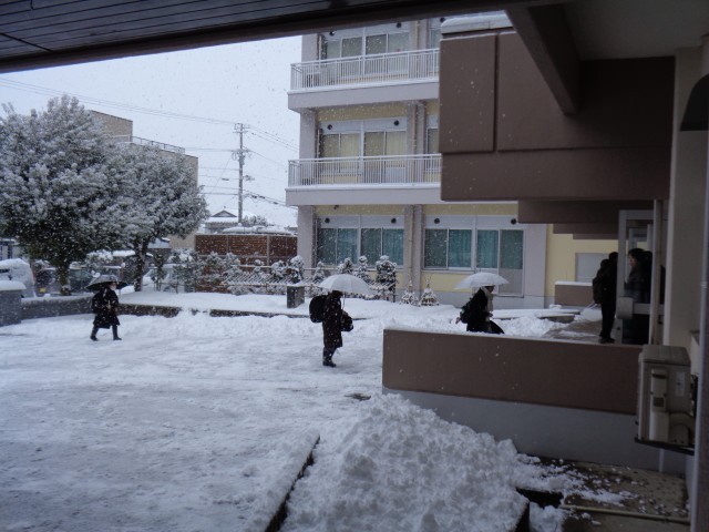 今朝は大雪警報が出ています。雪の中でも元気に登校しています。