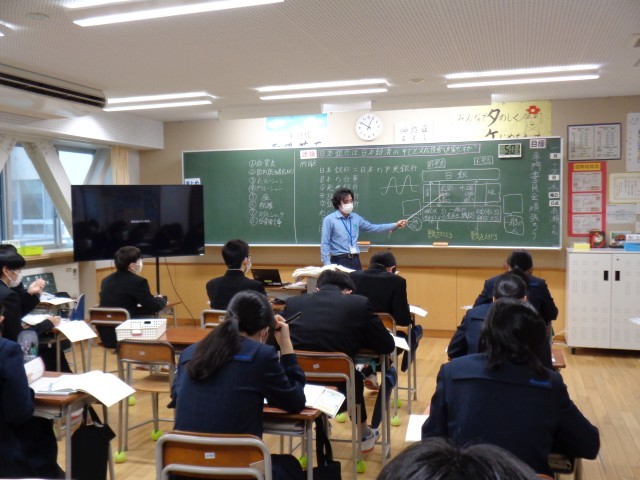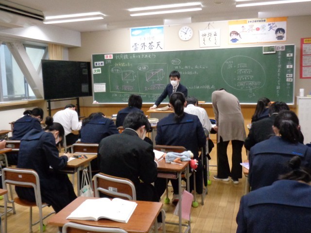 3年生の授業です。社会と数学です。数学では、2人の先生が授業に入っています。気軽に質問できますね。