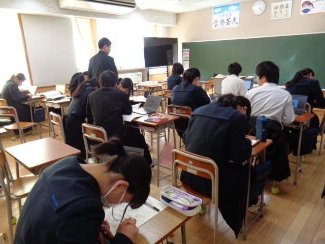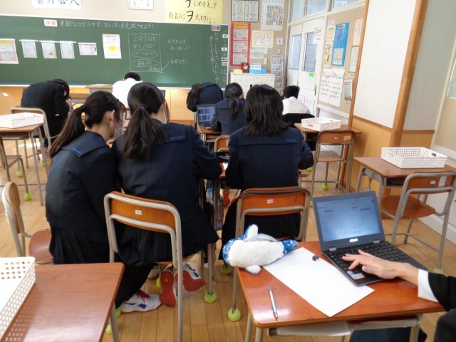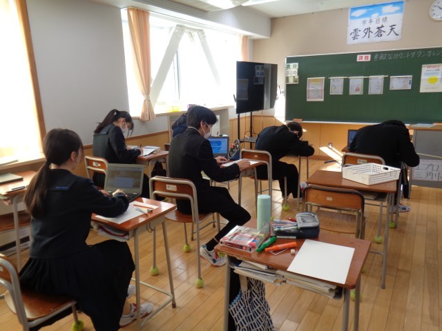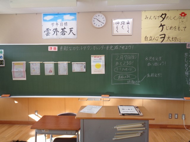 3年生の授業です。卒業までのカウントダウンカレンダーを作っていました。1人1人工夫を凝らして仕上げています。掲示されるのが楽しみです。ちょっと息抜きになったようです。