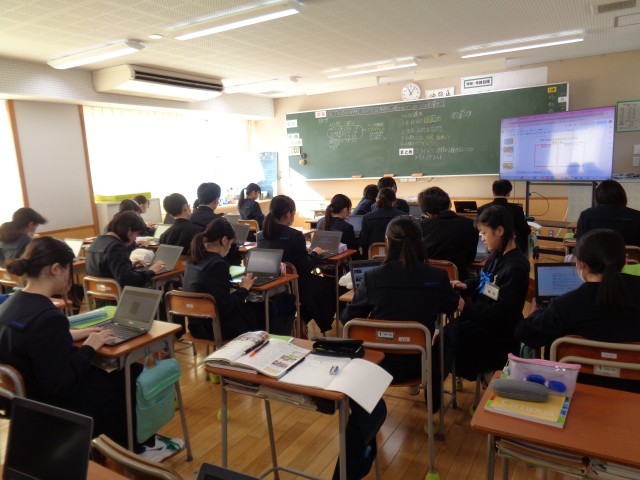 1年生の社会です。クロムブックでまとめています。隣の学習室では、日本語の指導を受けています。
