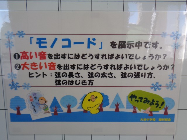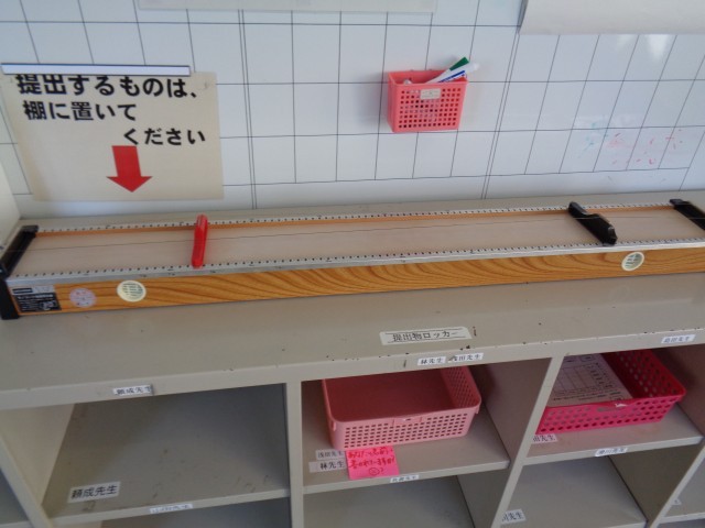 職員室前にモノコードが置かれています。1年生の理科で音の学習をしています。2,3年生も復習になりますね。