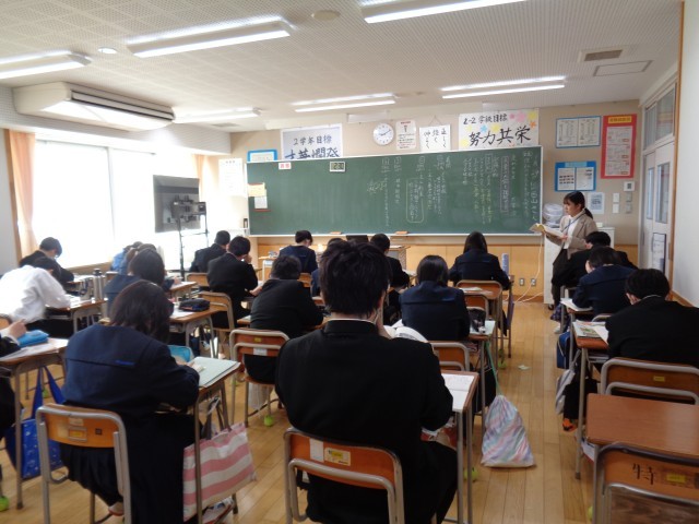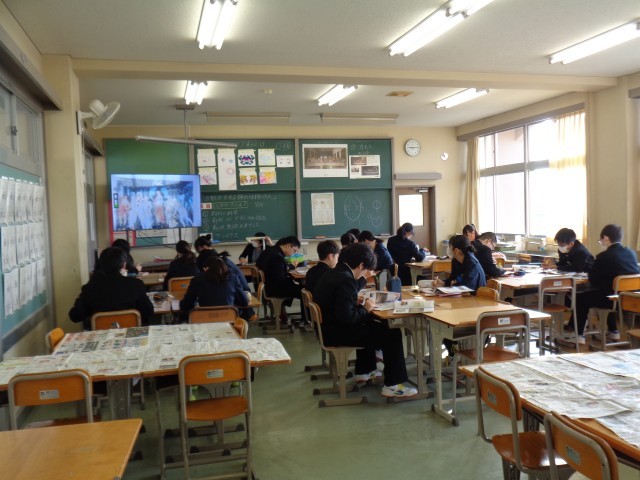 2年生の授業です。国語では、「走れメロス」の音読を聞いていました。美術では、いろいろな作品について学習していました。