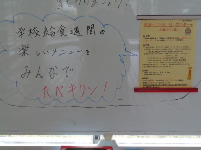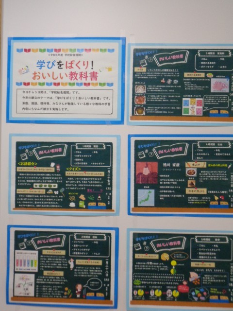 今週は学校給食週間です。給食委員会では「目指せ!たべキリンマスター☆」の取組をします。今週の献立をお楽しみに!