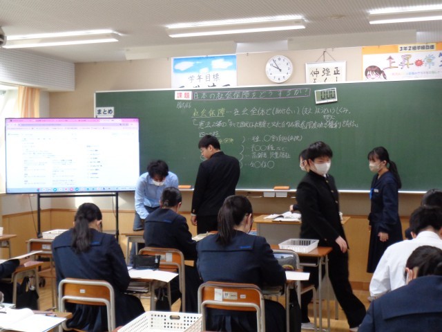 3年生は社会と英語です。体調を崩している人が多いようです。校内は窓を少し開け換気をしています。手洗いうがいなどをして、体調管理をしましょう。