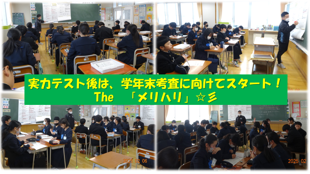 その後、学年末考査の個人の目標を班ごとに確認し、新たな気持ちでスタートしていました!