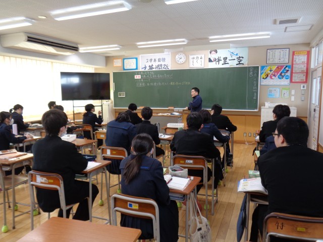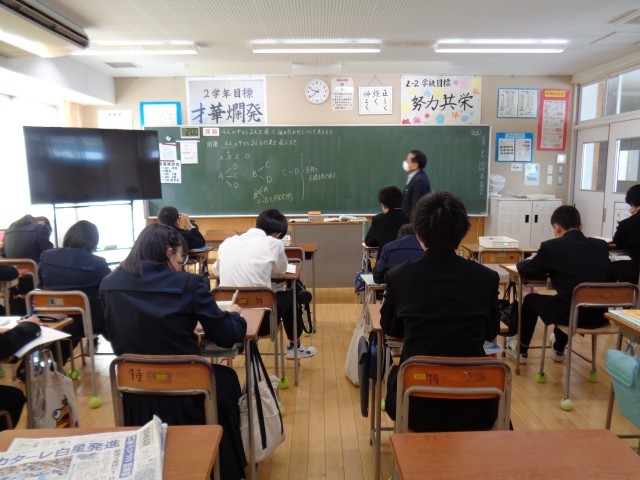 2年生は保健体育と数学です。明日から学年末考査です。真剣に取り組んでいます。