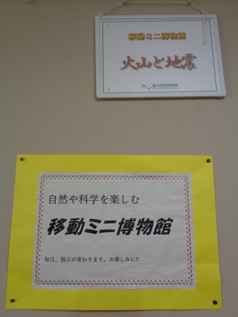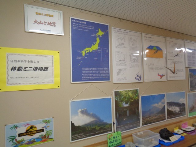 移動ミニ博物館の展示が変わりました。今回は「火山と地震」です。中学校1年生で学習する内容です。写真だけでなく、大きな実物の岩石等の展示もあります。3年生も復習になるので、ぜひ見ておきましょう。今年度はこの展示が最後になります。休日に、科学博物館へ出かけてみましょう。