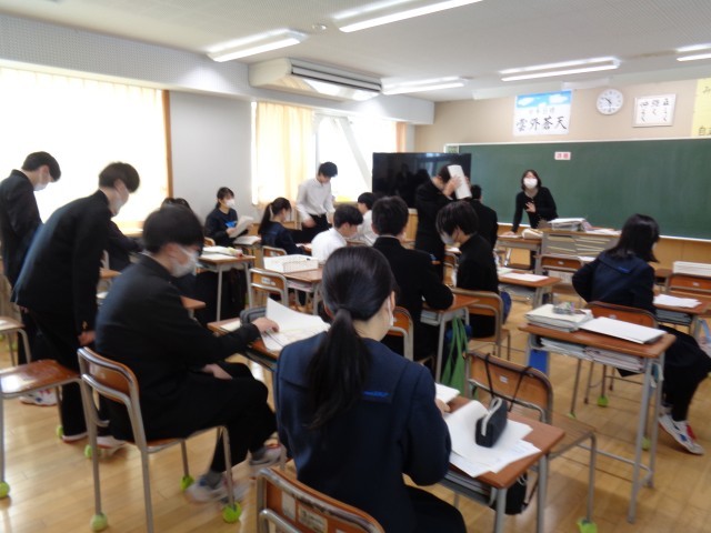 3年生です。英語と理科です。英語では学年末考査が返却されていました。理科では、発電の種類等を学習しています。