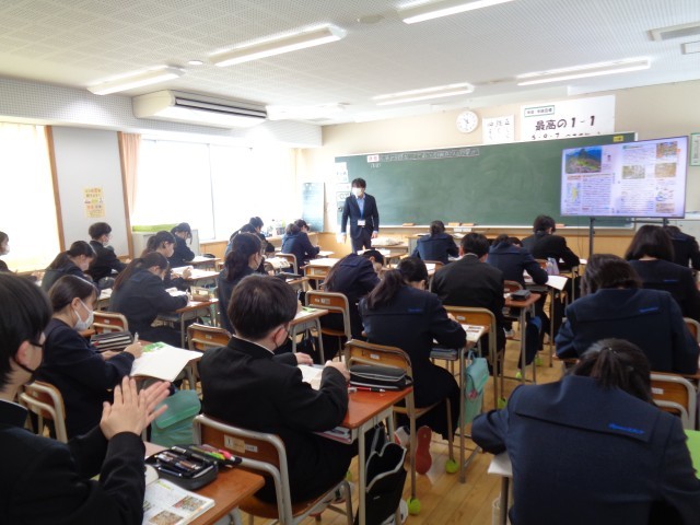 1年生は社会です。民族が多様だと国にどんな影響があるのでしょう。意見を出してしっかり考えていました。