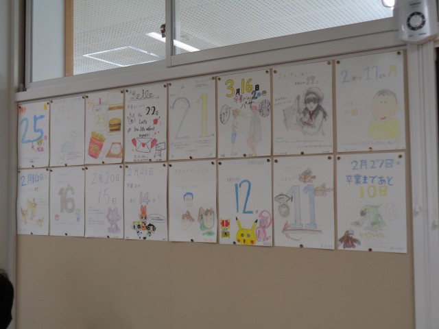 3年生の社会と国語です。カウントダウンカレンダーが掲示されています。登校する日が残り少なくなってきました。