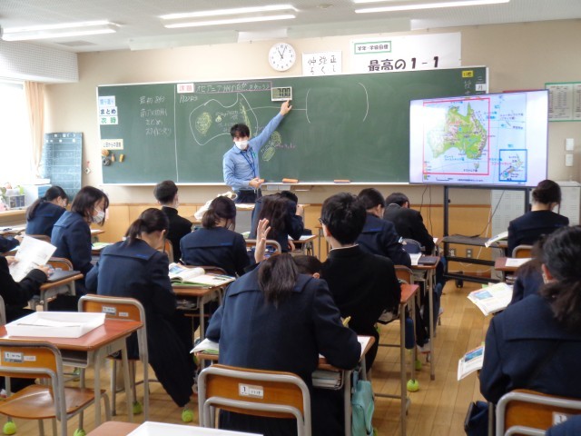 1年生は社会です。各自で資料を使って、オーストラリアについて調べていました。