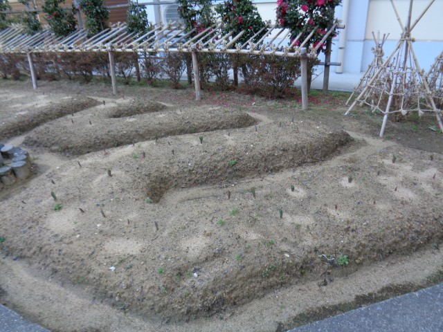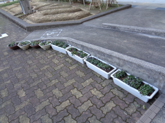 今朝も生徒がボランティアで清掃していました。3年生から2年生へ引き継がれています。いつもありがとう!!玄関前の花壇の植物が少しずつ大きくなっています。