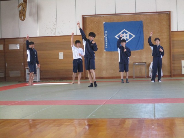 今日の1年生体育の時間に「ダンス発表会」を行いました。事前に一生懸命練習した成果を、どのグループも精一杯表現していました。発表の後は、どのチームにもあたたかい拍手が送られていました。