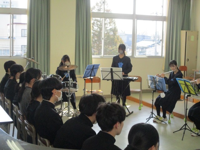 今日の放課後に「部活動送別会」を行いました。久しぶりに3年生と練習したり、思い出を語ったりする場面が見られました。また、先輩のために1・2年生が演奏する姿も見られました。どの部活動も素敵な時間を過ごしていました。
