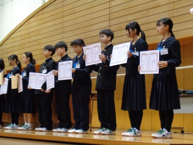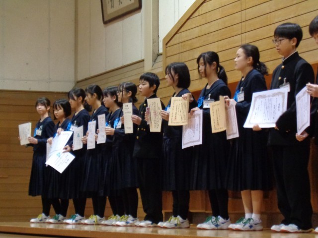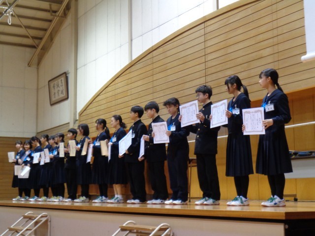 受賞報告会をしました。たくさんの生徒が受賞の感想を述べて報告しました。受賞の喜びが伝わりました。