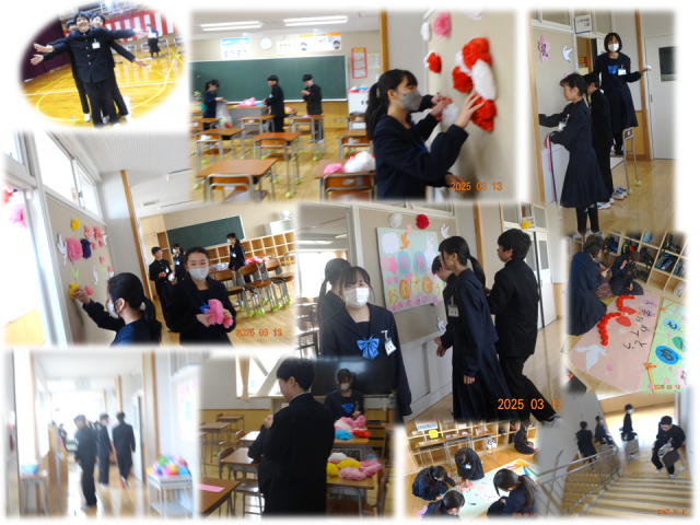 卒業式の余韻が残る中、在校生は校内の片付けを行いました。