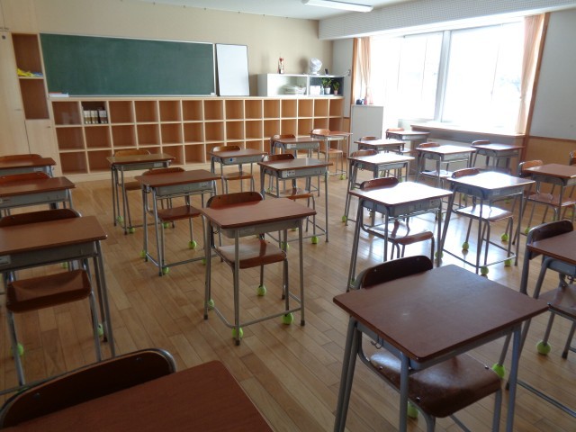 今朝は、春らしい天気です。3年生が卒業したので、1,2年生のみが登校しています。3年教室は静かです。