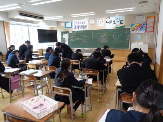 授業の様子です。2年生の数学、保健体育、1年生の国語です。授業最終日も頑張っています。