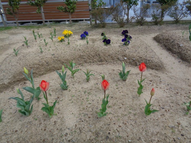 今日から新学期が始まります。さわやかな天気となっています。学校の植物も花を咲かせて、皆さんの登校を待っています。