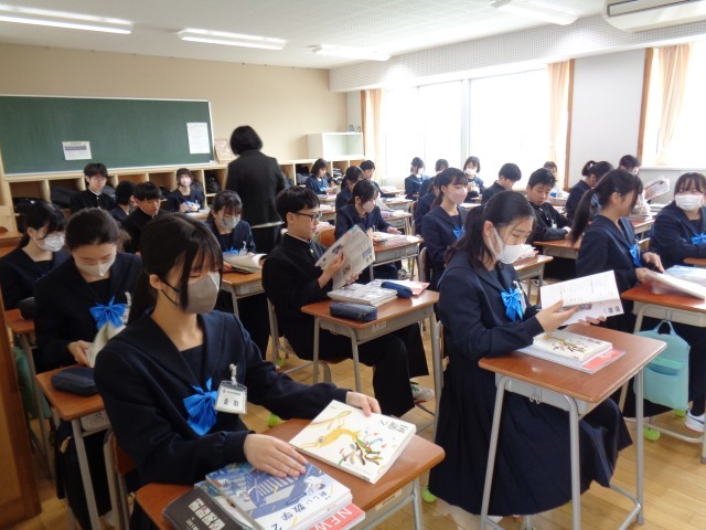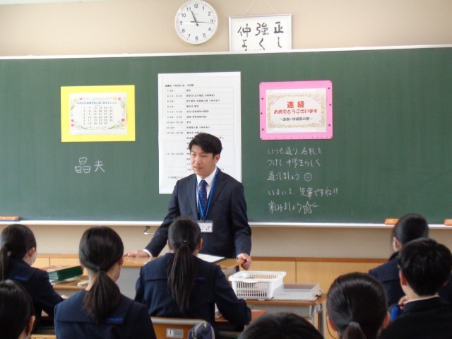 初めての学活です。先生の紹介や新しい教科書が配布されました。写真は2年生です。
