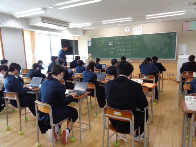 全国学力・学習状況調査の質問紙と理科はクロムブックを使って行いました。