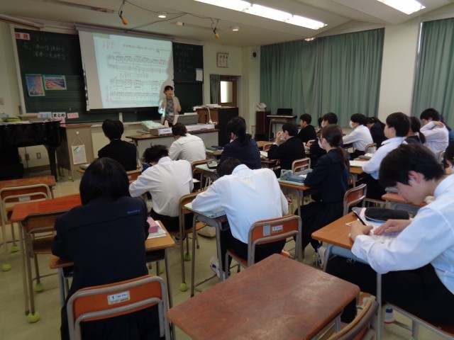 3年生の社会科と音楽です。社会科では、発表をしていまいた。音楽では、初めて出てくる記号を確認していました。