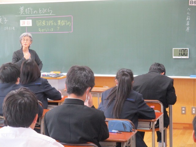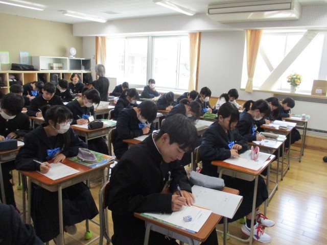 今日の1年生の授業の様子です。今日から美術が始まりました。ワークシートを真剣に書いています。理科では、学校敷地内のいろいろな生物をクロームブックで撮影しました。