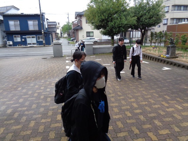 今日は少し雨が降っていました。最近は早めに登校する人が多いようです。