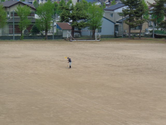 本日、光化学オキシダントの訓練を行いました。グラウンドの中央に黄色の旗を立てました。