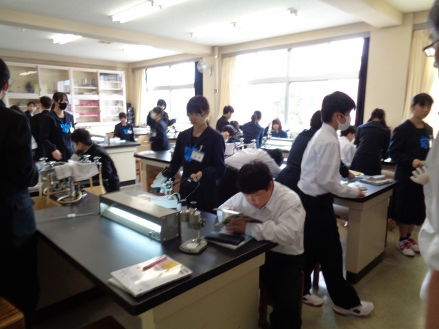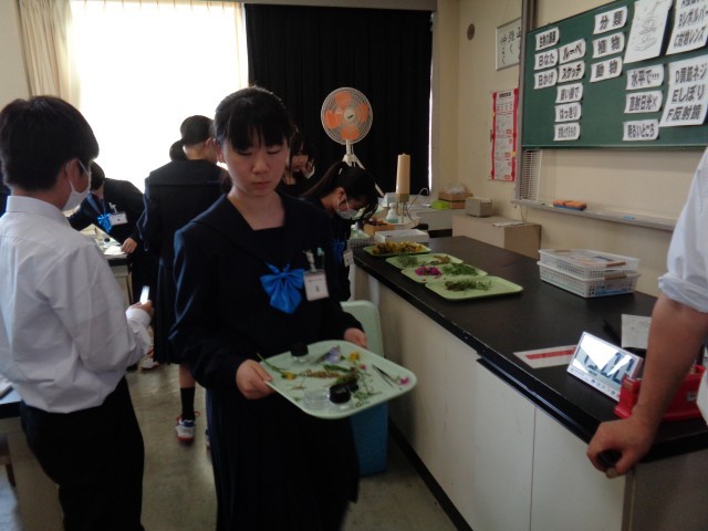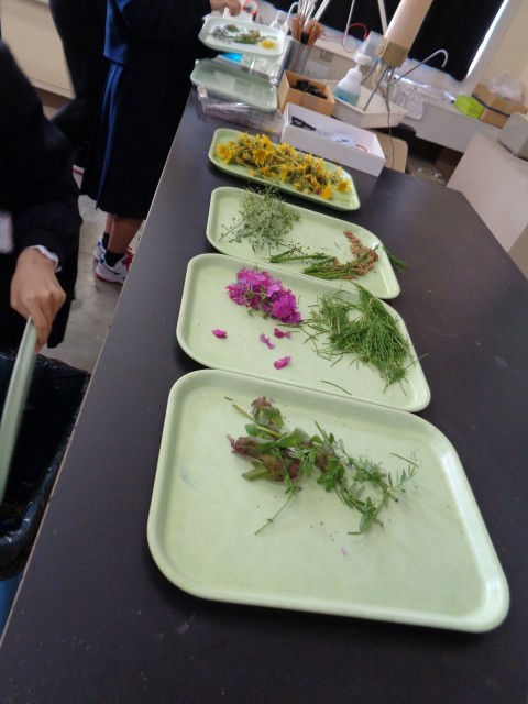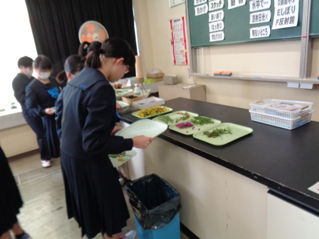 1年生の理科の様子です。今日は理科室で花の観察をしていました。ちょうど観察が終了し、片付けをしていました。器具や観察物をしっかりと片付けていました。分からないことは、先生に確認している人も見られました。頑張っていますね。