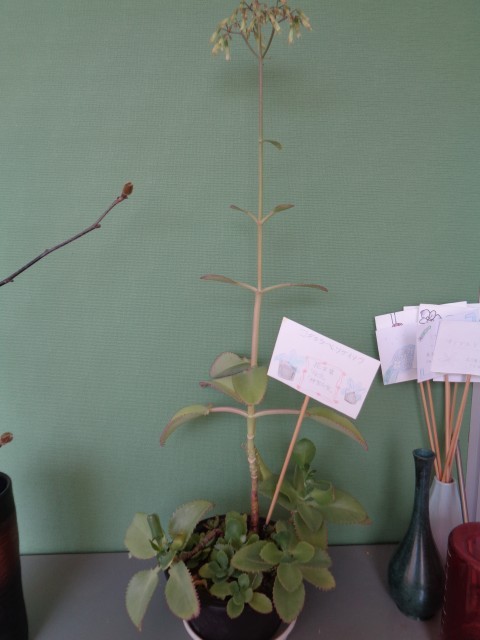 職員室前のコダカラベンケイソウの花が咲いています。3年生は理科の教科書に載っています。どのようなふえ方をするのでしょうか。