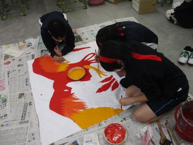 体育大会を彩るデコレーションも着々と進行中です。どのようなデザインか分かりますか?