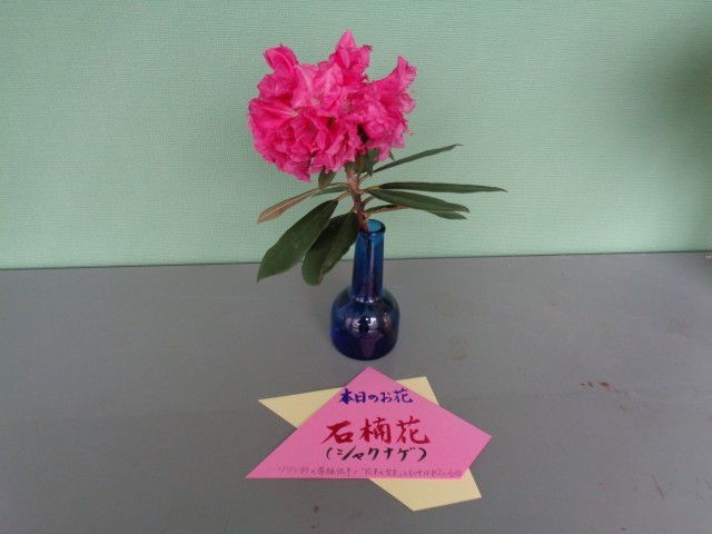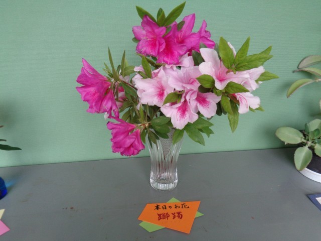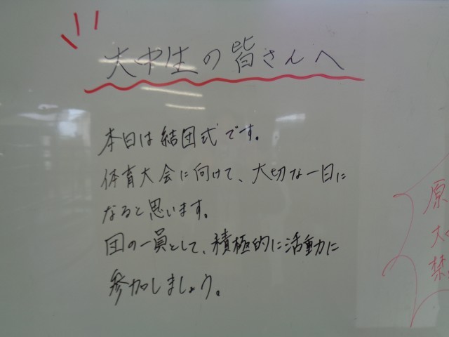 生徒玄関前のホワイトボードです。生徒会執行部のみなさんいつもありがとうございます。職員室前にきれいな花が飾られました。漢字で書くと難しいですね。