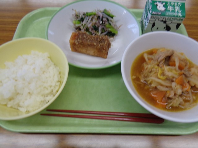 メニューは、ごはん、牛乳、揚げ出し豆腐のこまだれかけ、ゆかり和え、すき焼きでした。美味しくいただきました。