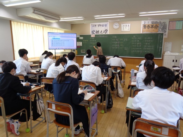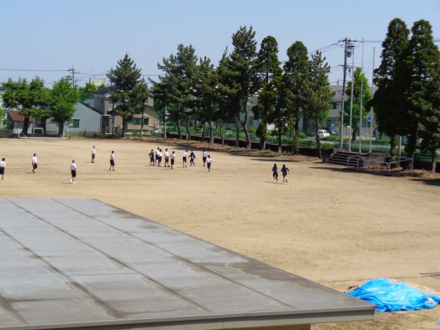 3年生の保健体育と英語です。保健体育ではリレーをしていました。天気がよく、気温も高くないのでグラウンドでの活動は気持ちよさそうです。