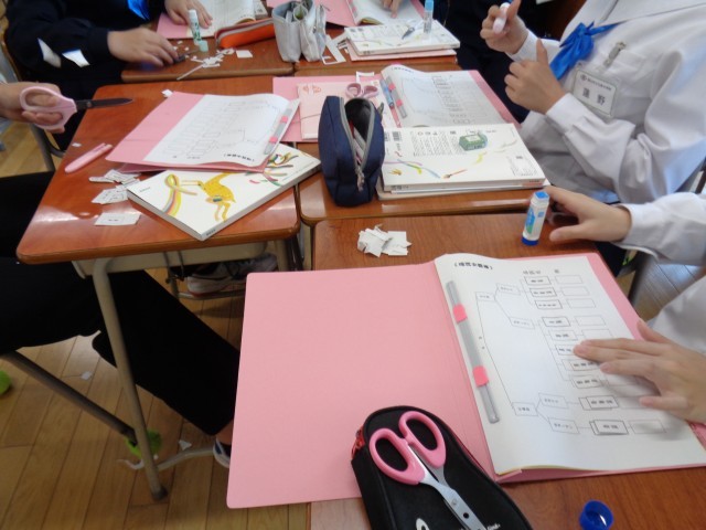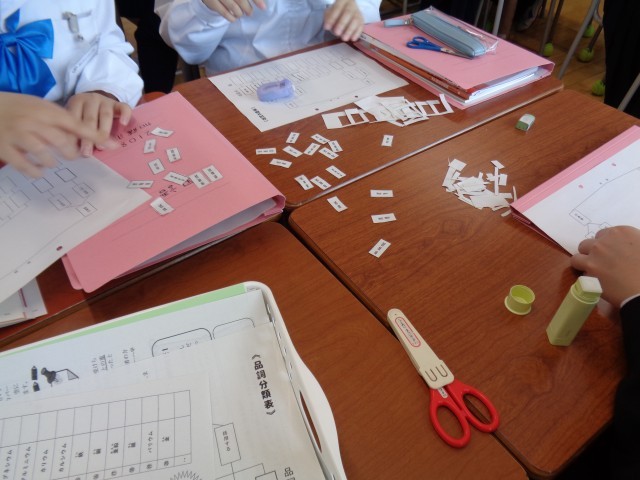 2年生の国語です。文法の学習をしています。作業をしながらまとめています。