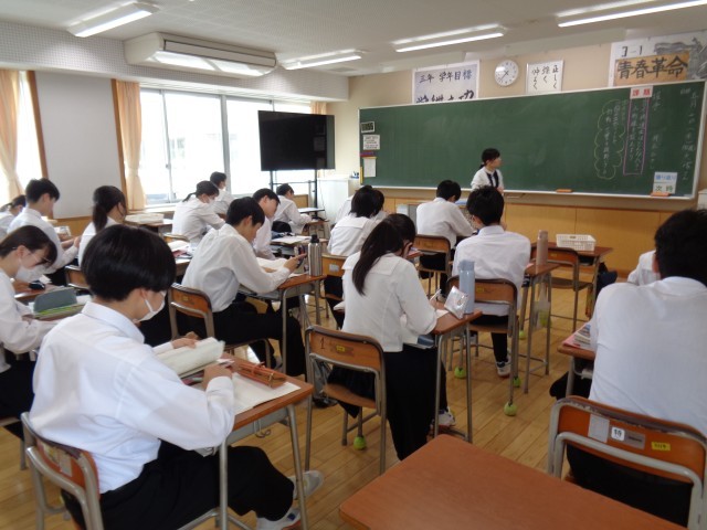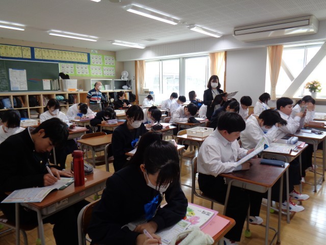 各学年の授業の様子です。1年生国語、2年生数学、3年生国語、社会です。