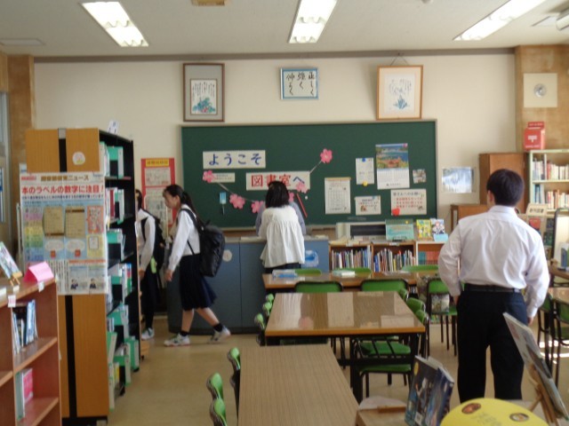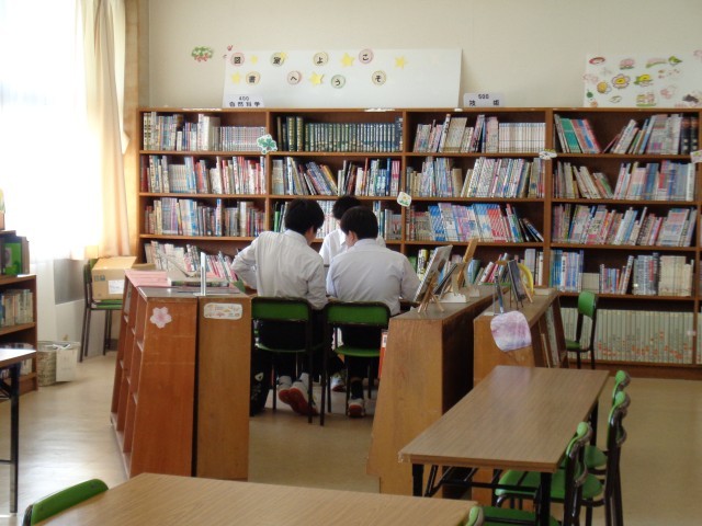 放課後、図書支援員の方が図書室を開館されました。学習に使っている人がいます。また、本を借りたり返したりした生徒もいました。